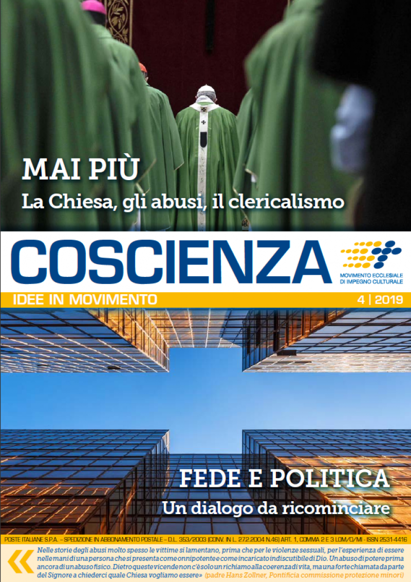 «Negli ultimi tempi ci è stato chiesto con forza di ascoltare il grido delle vittime dei vari tipi di abusi commessi da alcuni vescovi, sacerdoti, religiosi e laici [...]. Il desiderio di dominio, la mancanza di dialogo e di trasparenza, le forme di doppia vita, il vuoto spirituale, nonché le fragilità psicologiche sono il terreno su cui prospera la corruzione». Nella Christus vivit papa Francesco indica con chiarezza che alla radice degli abusi c'è «la tentazione permanente del clericalismo». Affrontare il problema della violenza nella Chiesa è, dunque, una necessità inderogabile se si vuole riscoprire la fedeltà al Vangelo. Ci prova anche Coscienza, con un numero ricco di voci autorevoli: innanzitutto quella di padre Hans Zollner, presidente del Centre for Child Protection della Pontificia Università Gregoriana e membro della Pontificia Commissione per la protezione dei minori, sacerdote gesuita e studioso in prima linea nella lotta agli abusi, da ben prima che la Chiesa trovasse il coraggio per affrontare il problema a viso aperto. Accanto all'intervista a padre Zollner troverete gli interventi di Marie-Jo Thiel, medico e teologa, direttrice del Centro europeo d'insegnamento e ricerca in etica di Strasburgo, e di Sergio Astori, psichiatra e psicoterapeuta, docente alla Cattolica di Milano.